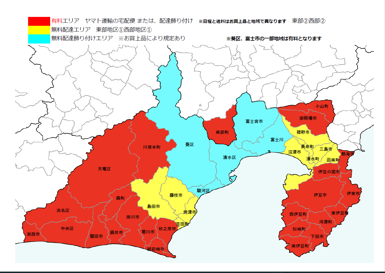 詳しくは配達可能エリア(静岡県地図)にてご確認ください