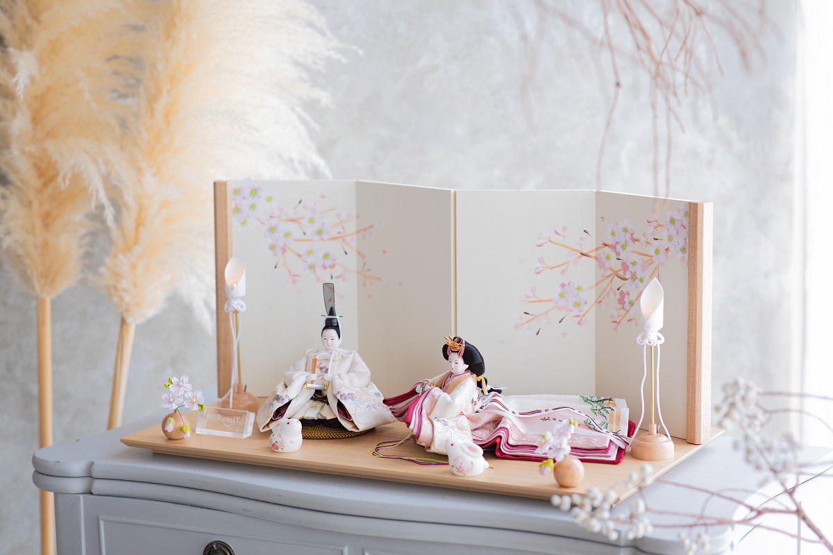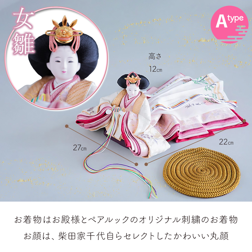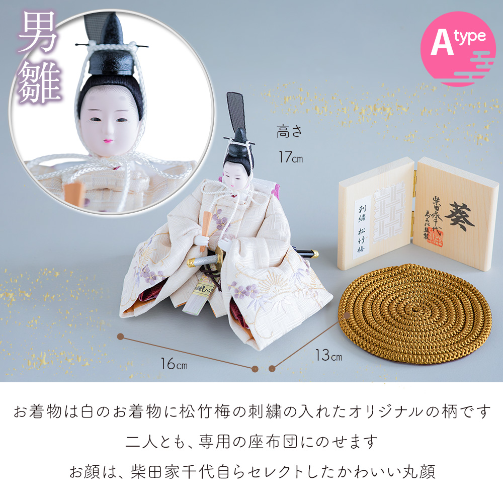 女流作家・柴田家千代(しばたやちよ)作の オリジナル人形飾りです。 ベージュのペアルックのお着物は別注品となります。 こちらはAタイプです。